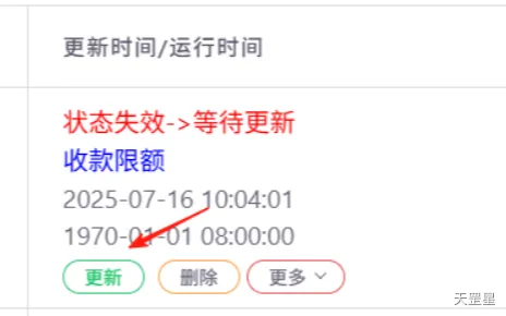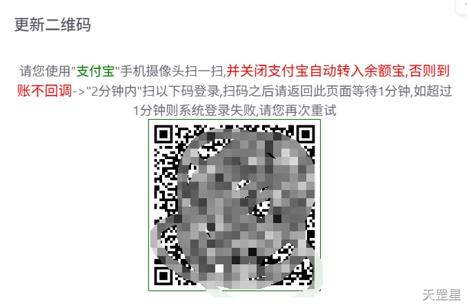 填写完成后,点击确定,必须左上角刷新页面,再次点击更新,选择扫码登录,使用同一支付宝扫码登录