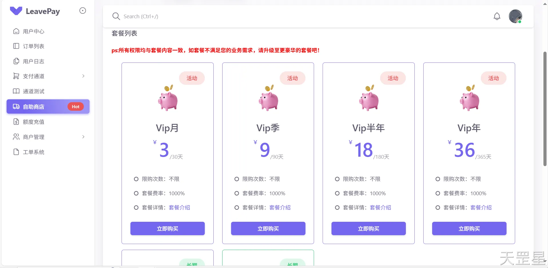 点击自助商店进行套餐购买(选择合适自己的套餐即可)
