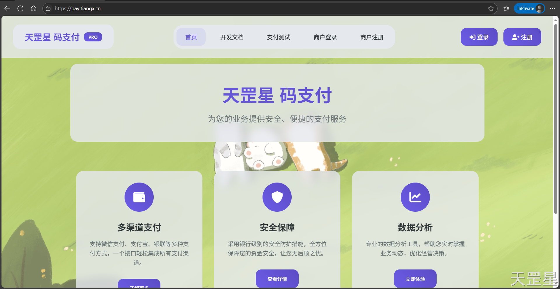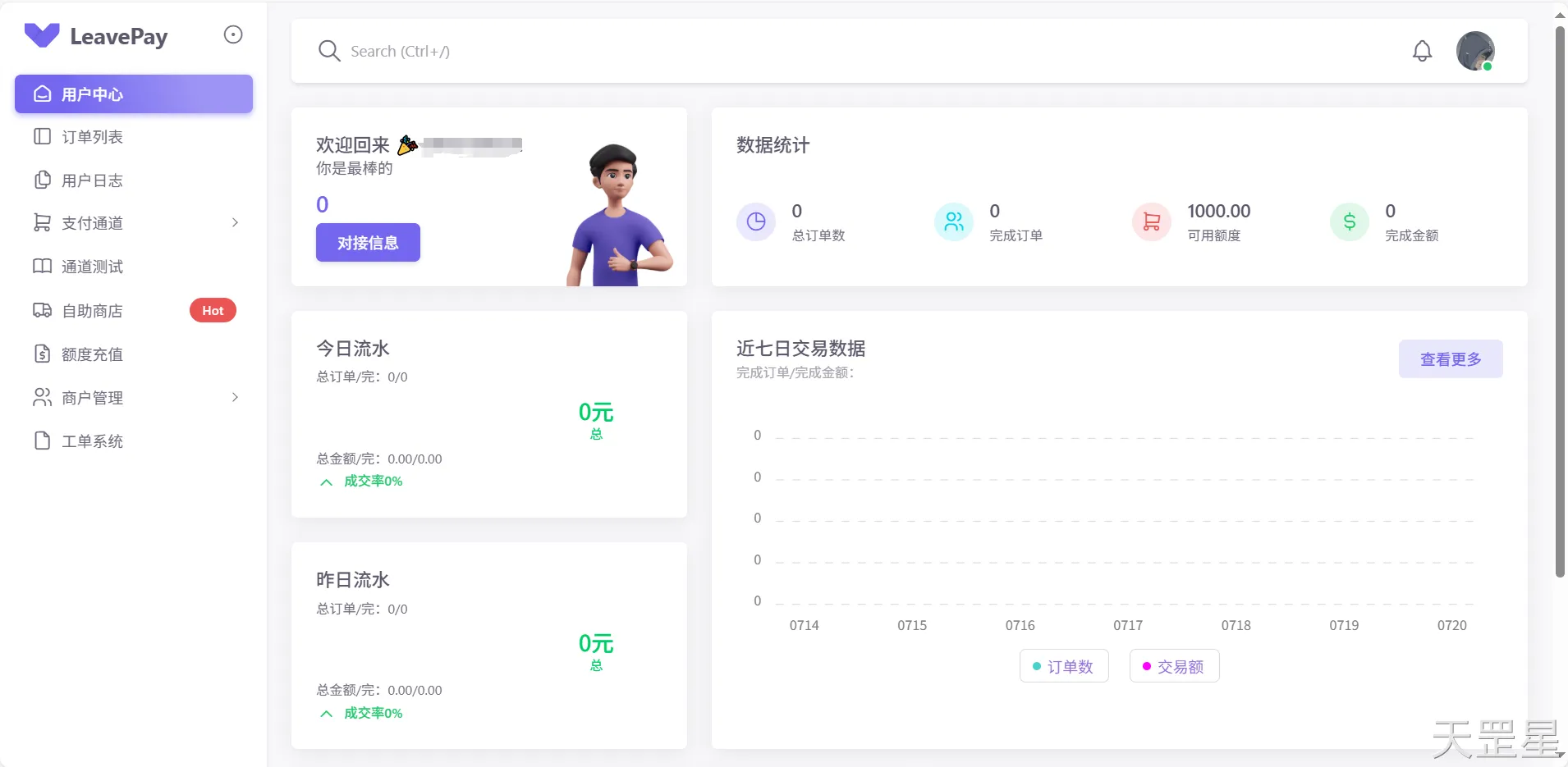 首先打开平台:https://pay.tiangx.cn/