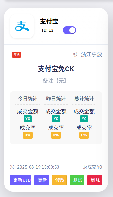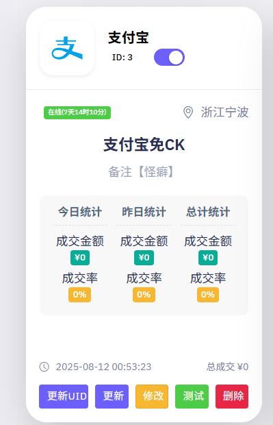添加好后是这样的,需要点击更新UID进行扫码登录支付宝