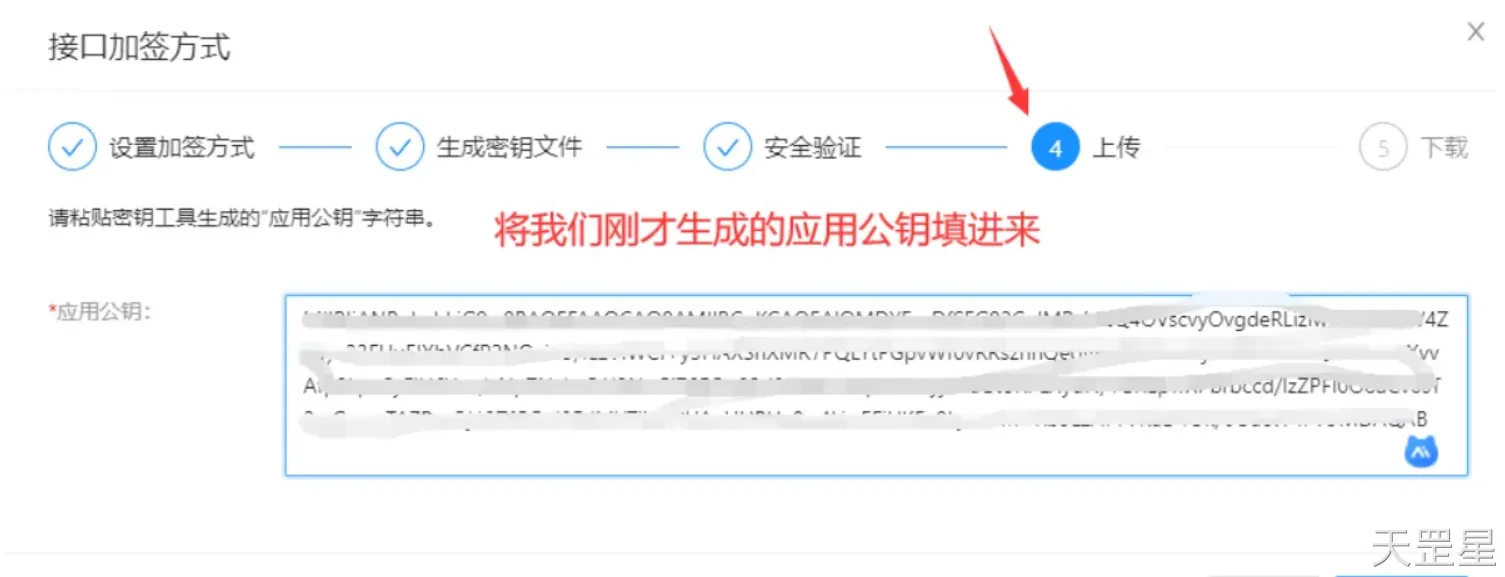 下一步短信验证,然后下一步,将我们生成的“应用公钥”填进来(看清楚,是公钥,不是密钥)