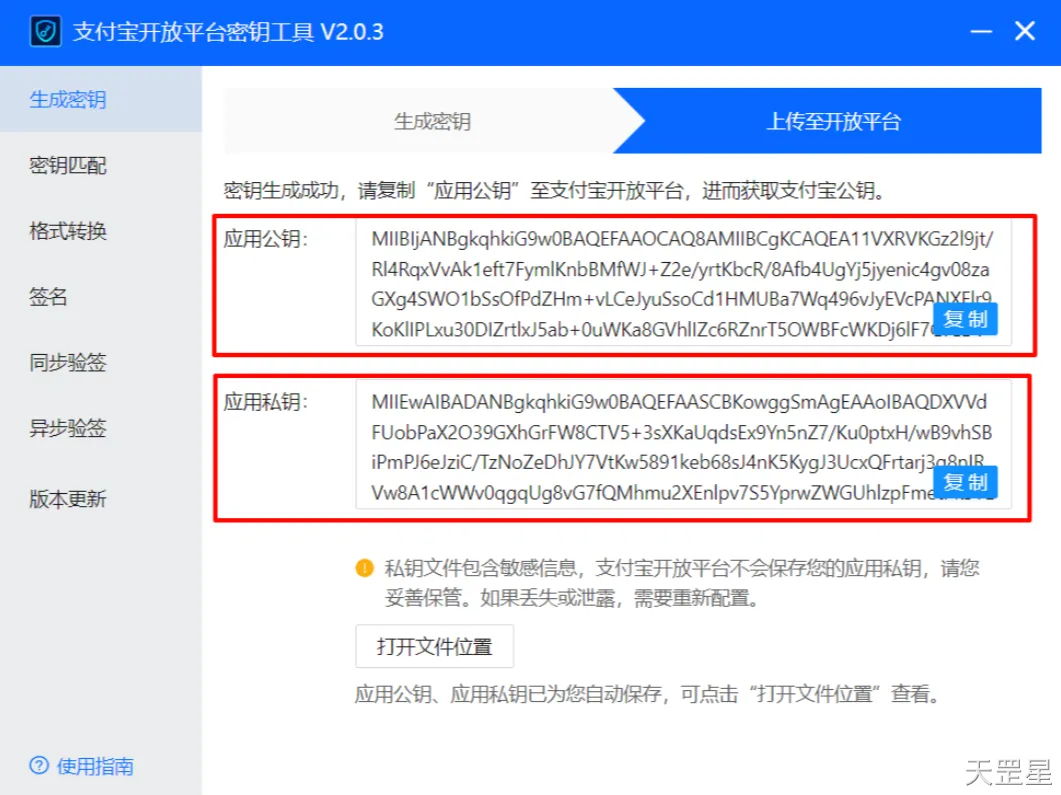 应用公钥、应用私钥如图: