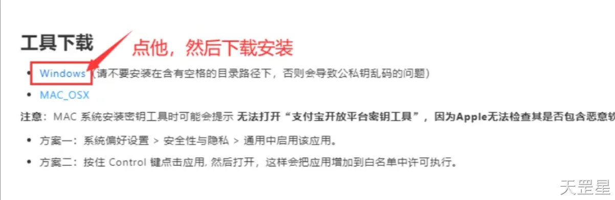 点击“密钥工具”,点击“windows”,下载”支付宝开放平台密钥工具”,然后安装。